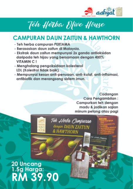House Of Aafiyat Lifestyle O L I V E H O U S E Khasiat Teh Daun Zaitun Olive House Aafiyat Lifestyle from 1.bp.blogspot.com Teh herba daun zaitun olive house. We did not find results for: Maybe you would like to learn more about one of these? Check spelling or type a new query.